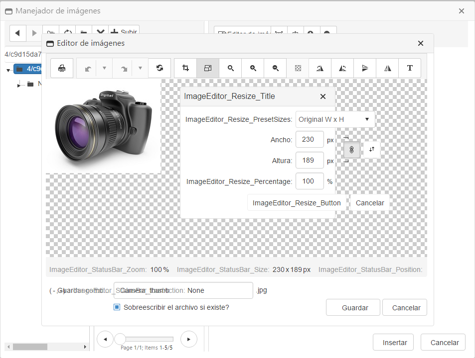 Everything is working well but the image editor is not rendered properly (check the attached files).