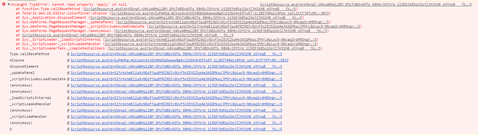 hi, i am using a radeditor in my asp:Repeater. when user tried to add a new row in the repeater, a JS error was thrown