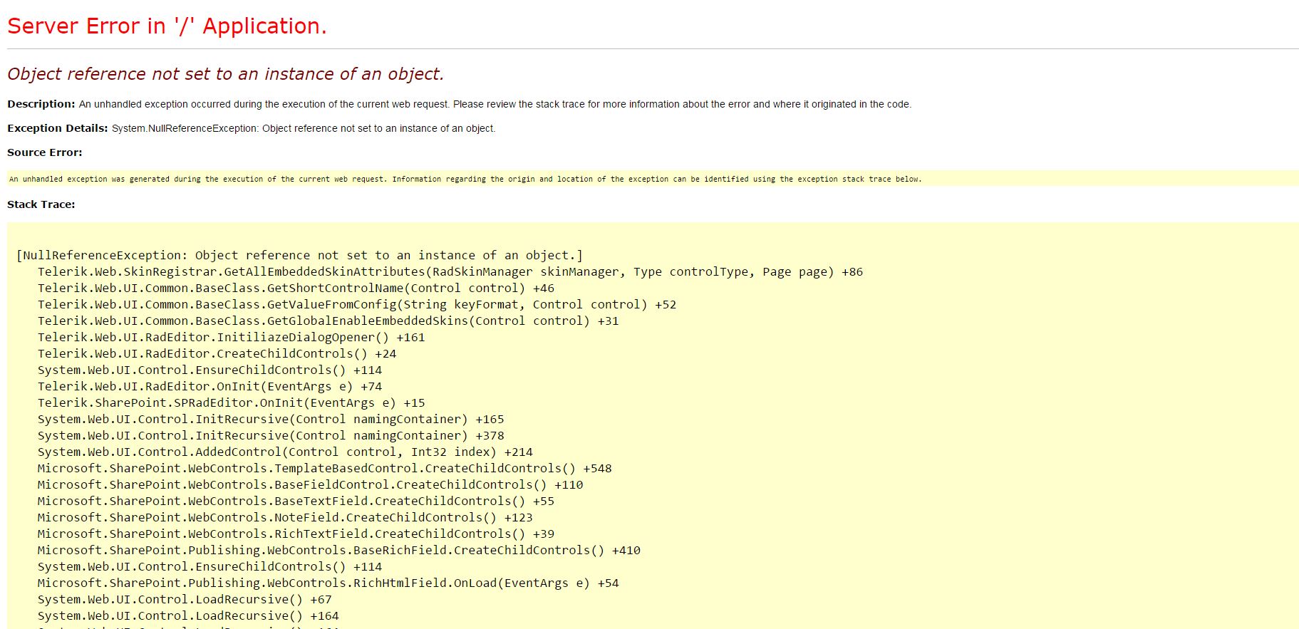 2. I got error page when i want to edit the page in Sharepoint 2013. It prompt me "Object reference not set to an instance of an object."