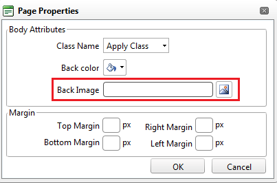 I am using RadEditor in which I have facilitated user to set background image of editor using page properties dialog box. Now the issue is I have to set an ImageManager which opens on clicking browse button of Page Properties as shown in attached image and then user is asked to either select the image from existing ones or upload his own. I don't want to show user which images are already exists in server. I just want when user clicks browse button, he should be able to select the image from his local machine and then the selected image will be set as background image of the RadEditor.