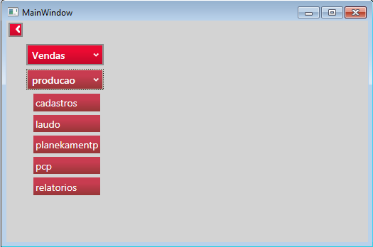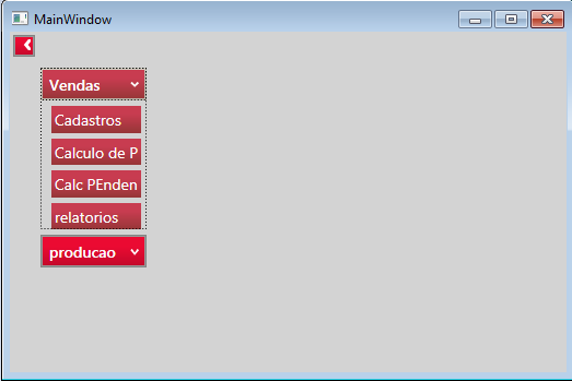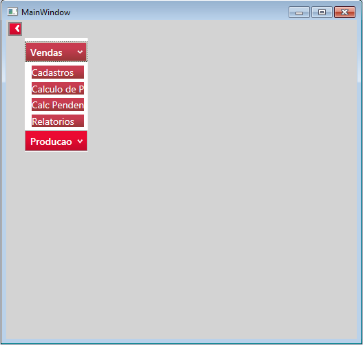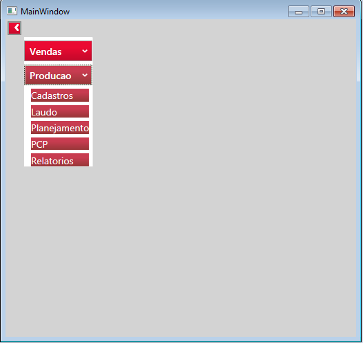 <Window x:Class="WpfApplication1.MainWindow" xmlns:telerik="http://schemas.telerik.com/2008/xaml/presentation" xmlns:System="clr-namespace:System;assembly=mscorlib" Title="MainWindow" Height="350" Width="525"> <Window.Resources> <!-- RadPanelItem colors --> <LinearGradientBrush x:Key="BackgroundButton" EndPoint="0.5,1" StartPoint="0.5,0"> <GradientStop Color="#FFEB0A32" Offset="0.31"/> <GradientStop Color="#FFC3092A" Offset="1"/> <GradientStop Color="#FFEB0A32" Offset="0.008"/> </LinearGradientBrush> <LinearGradientBrush x:Key="BackgroundButtonSelected" EndPoint="0.5,1" StartPoint="0.5,0"> <GradientStop Color="#FFC83C50" Offset="0.31"/> <GradientStop Color="#FF963637" Offset="1"/> <GradientStop Color="#FFC83C50" Offset="0.008"/> </LinearGradientBrush> <LinearGradientBrush x:Key="BackgroundButtonMouseOver" EndPoint="0.5,1" StartPoint="0.5,0"> <GradientStop Color="#FFEB3C32" Offset="0.31"/> <GradientStop Color="#FFC33C2A" Offset="1"/> <GradientStop Color="#FFEB3C32" Offset="0.008"/> </LinearGradientBrush> <LinearGradientBrush x:Key="BackgroundButtonPressed" EndPoint="0.5,1" StartPoint="0.5,0"> <GradientStop Color="#FFC83C50" Offset="0.31"/> <GradientStop Color="#FF963637" Offset="1"/> <GradientStop Color="#FFC83C50" Offset="0.008"/> </LinearGradientBrush> <!-- RadPanelItem Subitems colors --> <LinearGradientBrush x:Key="BackgroundButton2" EndPoint="0.5,1" StartPoint="0.5,0"> <GradientStop Color="#FFC83C50" Offset="0.31"/> <GradientStop Color="#FF963637" Offset="1"/> <GradientStop Color="#FFC83C50" Offset="0.008"/> </LinearGradientBrush> <LinearGradientBrush x:Key="BackgroundButtonSelected2" EndPoint="0.5,1" StartPoint="0.5,0"> <GradientStop Color="#FFC95868" Offset="0.31"/> <GradientStop Color="#FF955858" Offset="1"/> <GradientStop Color="#FFC95868" Offset="0.008"/> </LinearGradientBrush> <LinearGradientBrush x:Key="BackgroundButtonMouseOver2" EndPoint="0.5,1" StartPoint="0.5,0"> <GradientStop Color="#FFFF3E61" Offset="0.31"/> <GradientStop Color="#FFD82C5B" Offset="1"/> <GradientStop Color="#FFFF3E61" Offset="0.008"/> </LinearGradientBrush> <LinearGradientBrush x:Key="BackgroundButtonPressed2" EndPoint="0.5,1" StartPoint="0.5,0"> <GradientStop Color="#FFC95364" Offset="0.31"/> <GradientStop Color="#FF974F4F" Offset="1"/> <GradientStop Color="#FFC95364" Offset="0.008"/> </LinearGradientBrush> <!-- RadButton Style --> <Style TargetType="telerik:RadButton"> <Setter Property="Margin" Value="10 10 10 10"/> <Setter Property="CornerRadius" Value="5"/> <Setter Property="Cursor" Value="Hand" /> <Setter Property="Height" Value="50" /> </Style> <!-- RadExpander Style --> <Style x:Key="RadExpanderStyle" TargetType="{x:Type telerik:RadExpander}"> <Setter Property="Template"> <Setter.Value> <ControlTemplate TargetType="{x:Type telerik:RadExpander}"> <Grid HorizontalAlignment="{TemplateBinding HorizontalAlignment}" VerticalAlignment="{TemplateBinding VerticalAlignment}"> <VisualStateManager.VisualStateGroups> <VisualStateGroup x:Name="HeaderStateGroup"> <VisualState x:Name="NormalHeader"/> <VisualState x:Name="MouseOverHeader"> <Storyboard> <ObjectAnimationUsingKeyFrames Duration="0" Storyboard.TargetProperty="Stroke" Storyboard.TargetName="OuterCircle"> <DiscreteObjectKeyFrame KeyTime="0"> <DiscreteObjectKeyFrame.Value> <LinearGradientBrush EndPoint="0.5,1" StartPoint="0.5,0"> <GradientStop Color="#FFD4D0C4"/> <GradientStop Color="#FFB9B5AA" Offset="0.126"/> </LinearGradientBrush> </DiscreteObjectKeyFrame.Value> </DiscreteObjectKeyFrame> </ObjectAnimationUsingKeyFrames> <ObjectAnimationUsingKeyFrames Duration="0" Storyboard.TargetProperty="Stroke" Storyboard.TargetName="InnerCircle"> <DiscreteObjectKeyFrame KeyTime="0"> <DiscreteObjectKeyFrame.Value> <SolidColorBrush Color="#FF989898"/> </DiscreteObjectKeyFrame.Value> </DiscreteObjectKeyFrame> </ObjectAnimationUsingKeyFrames> <ObjectAnimationUsingKeyFrames Duration="0" Storyboard.TargetProperty="Fill" Storyboard.TargetName="OuterCircle"> <DiscreteObjectKeyFrame KeyTime="0"> <DiscreteObjectKeyFrame.Value> <LinearGradientBrush EndPoint="0.5,1" StartPoint="0.5,0"> <GradientStop Color="#FFEB3C32" Offset="0.31"/> <GradientStop Color="#FFC33C2A" Offset="1"/> <GradientStop Color="#FFEB3C32" Offset="0.008"/> </LinearGradientBrush> </DiscreteObjectKeyFrame.Value> </DiscreteObjectKeyFrame> </ObjectAnimationUsingKeyFrames> <ObjectAnimationUsingKeyFrames Duration="0" Storyboard.TargetProperty="Fill" Storyboard.TargetName="arrow"> <DiscreteObjectKeyFrame KeyTime="0"> <DiscreteObjectKeyFrame.Value> <SolidColorBrush Color="White"/> </DiscreteObjectKeyFrame.Value> </DiscreteObjectKeyFrame> </ObjectAnimationUsingKeyFrames> </Storyboard> </VisualState> <VisualState x:Name="PressedHeader"> <Storyboard> <ObjectAnimationUsingKeyFrames Duration="0" Storyboard.TargetProperty="Stroke" Storyboard.TargetName="OuterCircle"> <DiscreteObjectKeyFrame KeyTime="0"> <DiscreteObjectKeyFrame.Value> <LinearGradientBrush EndPoint="0.5,1" StartPoint="0.5,0"> <GradientStop Color="#FFD4D0C4"/> <GradientStop Color="#FFB9B5AA" Offset="0.126"/> </LinearGradientBrush> </DiscreteObjectKeyFrame.Value> </DiscreteObjectKeyFrame> </ObjectAnimationUsingKeyFrames> <ObjectAnimationUsingKeyFrames Duration="0" Storyboard.TargetProperty="Stroke" Storyboard.TargetName="InnerCircle"> <DiscreteObjectKeyFrame KeyTime="0"> <DiscreteObjectKeyFrame.Value> <LinearGradientBrush EndPoint="0.5,1" StartPoint="0.5,0"> <GradientStop Color="#FFD4D0C4"/> <GradientStop Color="#FFB9B5AA" Offset="1"/> </LinearGradientBrush> </DiscreteObjectKeyFrame.Value> </DiscreteObjectKeyFrame> </ObjectAnimationUsingKeyFrames> <ObjectAnimationUsingKeyFrames Duration="0" Storyboard.TargetProperty="Fill" Storyboard.TargetName="OuterCircle"> <DiscreteObjectKeyFrame KeyTime="0"> <DiscreteObjectKeyFrame.Value> <LinearGradientBrush EndPoint="0.5,1" StartPoint="0.5,0"> <GradientStop Color="#FFEB000A" Offset="0.31"/> <GradientStop Color="#FFC3000A" Offset="1"/> <GradientStop Color="#FFEB000A" Offset="0.008"/> </LinearGradientBrush> </DiscreteObje