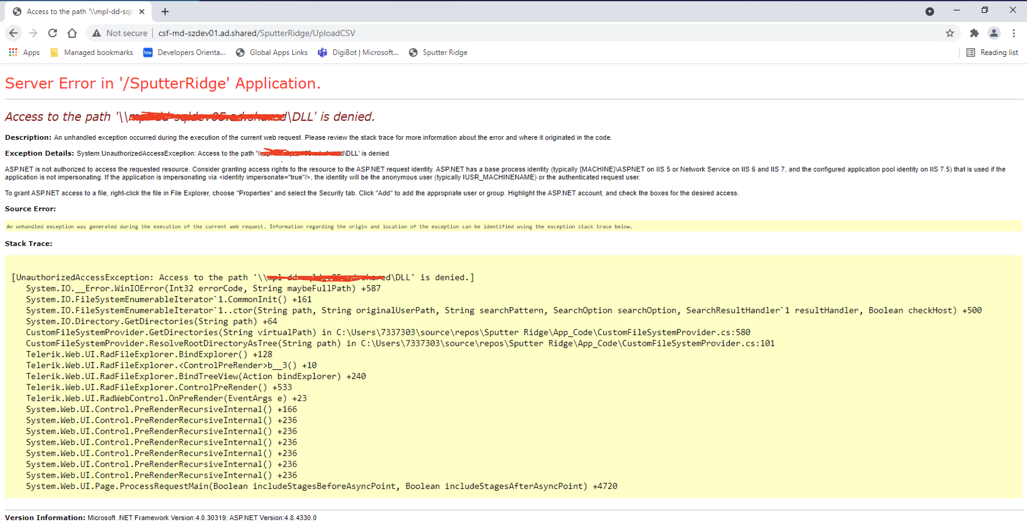 I able to access to the path as configured in the local system run. I encountered access to the path is denied error when i hosted it in IIS server.