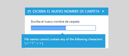 <script> Telerik.Web.UI.RadFileExplorer.prototype._alertWrongFileNameInput = function (input) { var tooltip = this.get_tooltipControl(); tooltip.set_targetControl(input); //tooltip.set_text(this.fileNameInvalidText + ":<br />" + this._getInvalidCharsToString()); var customMessage = "Your custom message here"; tooltip.set_text(customMessage); setTimeout(function() { tooltip.show(); }, 100); }</script>I hope this helps.