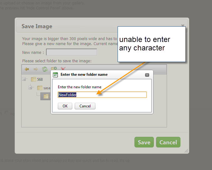 when i wanted to create a new folder, I was not able to type any character into the input element nor delete the default name.
