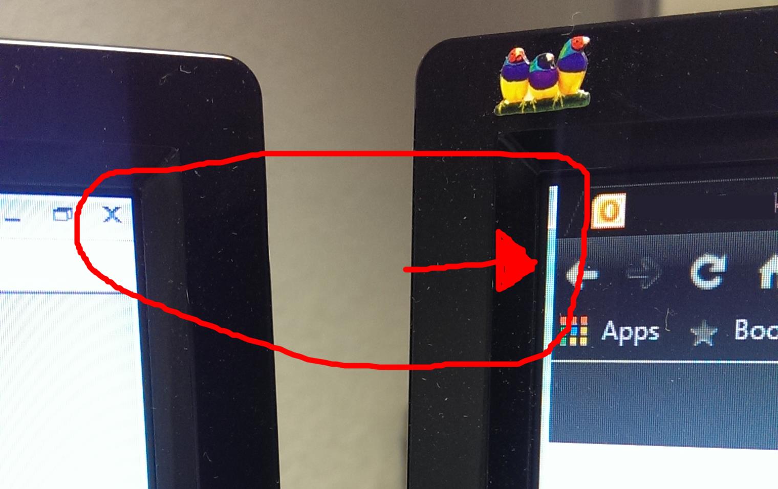 Now when I open the Main form on my left monitor then the Main form has a small edge on the right that is bleeding into the left side of the right monitor.