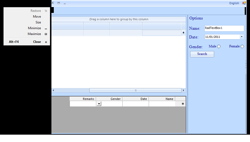 In regards to the question about Right-to-Left layout: we are aware of this issue and we have made researches about this behavior. Our WinForms controls are based on custom GDI painting and it seems that there is an issue with the GDI painting when the Form's RightToLeftLayout property is set to true. This is rather an issue in the .NET framework. As you can see in the attached project in which no Telerik controls are involved, there are visual glitches when minimizing/maximizing/resizing the form. However, we are trying to work around this issue and your case can help us do so.