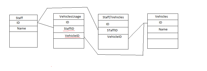 Is possible to use ItemsSourceBinding to when I chose The STaff from the Combobox he Selectes automatic the vehicles associated to him in the Staff/Vehicles table?