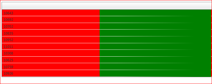 I am unsure of the code you have sent me. That suggests that the OrderID cell will be coloured in gray and the CustomerID cell will be coloured in green. Isn't that just one colour per cell, rather than what I want might be 50% of a cell will be coloured in blue and the other 50% of the cell in purple (as an example). I don't think your code allows for more than one background colour in one cell.