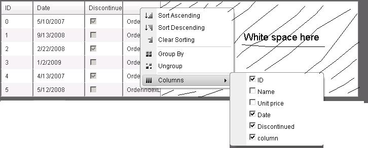 Hello, works when i resize a column but it's worst when i unselect a column. Grid doesnt resize unless theres a postback. See picture. I went to see the demo http://demos.telerik.com/aspnet-ajax/grid/examples/generalfeatures/headercontextfiltermenu/defaultvb.aspx but I still get white space on the right side of the grid.