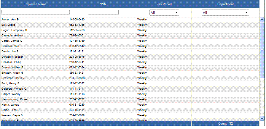 'Code to filter employees based on groups, department and Payperiods