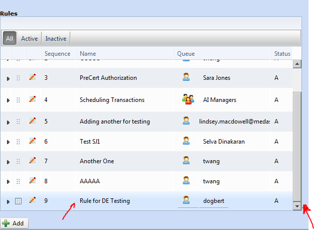 I have a RadGrid with Items Drag-and-drop functionality. It works great unless I have more than 6 rows which allows a vertical scroll bar in the grid. When I have a vertical scroll bar and try to drag the last item/row to the first or second row, it doesn't work. I have attached snap shots and code.
