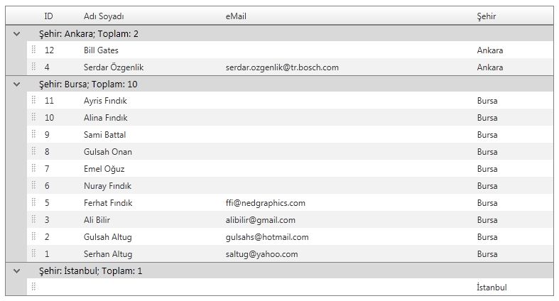 I want to make a Gridview with a default grouping. For example i have 2 tables. The first one includes Countries and Country IDs. The second contains ID, ContactName, Email, CountryID.