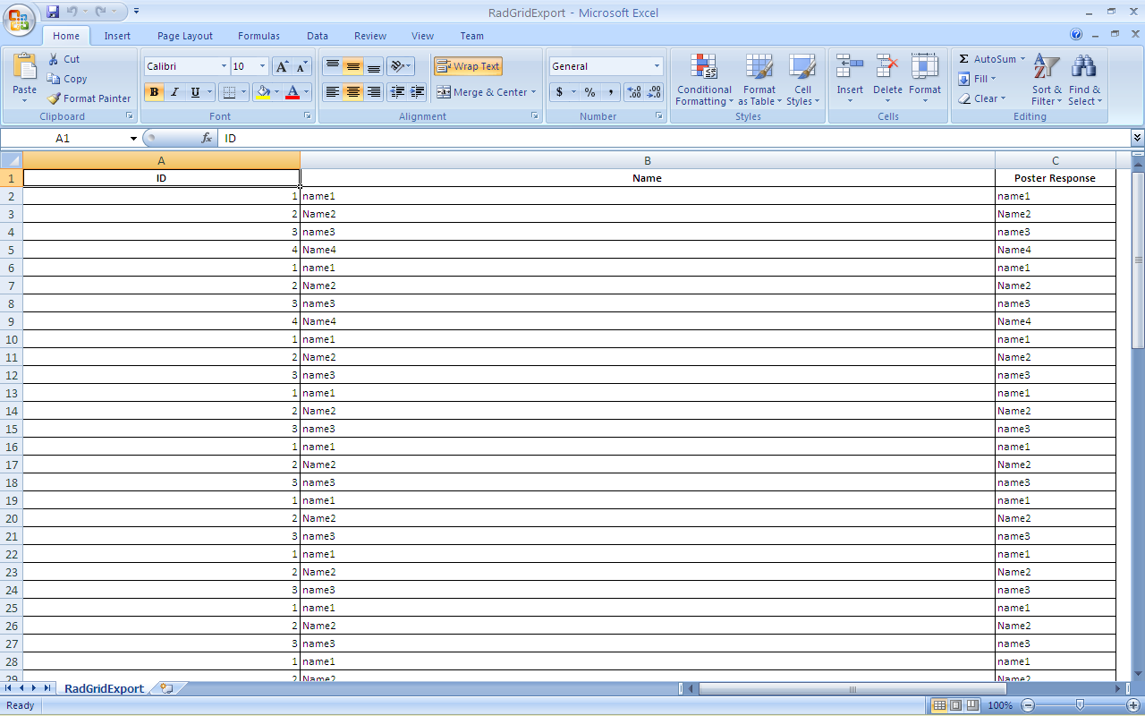 I have radgrid. I have some columns which have HeaderText is different from that of DataFeild column. When i do ExporttoExcel i need to export the HeaderText Column name as First row in the column.