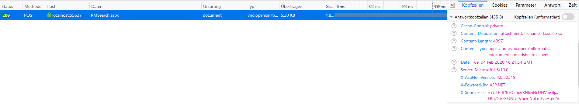 However, the data that is generated is fine. Also, it works when doing custom search through another Textfield / Button. The issue only occurs after previously filtering the grid. It seems like the source for the http request is false and the browser is not expecting a document to be returned. Instead of "document" as http request source it says "xhr". (see attachments: first one shows the error, the other the working request) When opening the request in another tab it works fine as well.