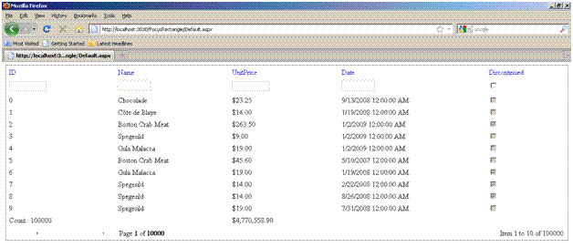 Here are some screen shots. IE works fine. You can achieve the same if you open the solution for RadControlExamples. Goto C:\Program Files\Telerik\RadControls for ASP.NET AJAX Q2 2010\Live Demos\Grid\Examples\Styles\CustomSkin\DefaultCS.aspx and set the skin to None then run in chrome of firefox and click in the grid.