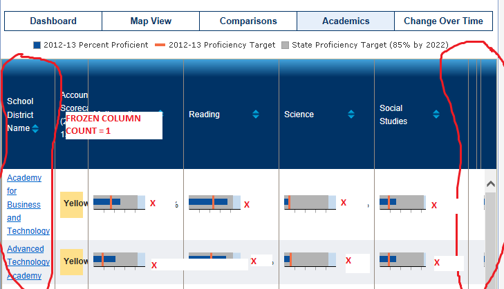 I am using product version 2013.1.417.45 and I can't get my radgrid to work properly in IE (version 11.0.96) when setting the frozen column count. Grid seems to work as expected in Chrome.