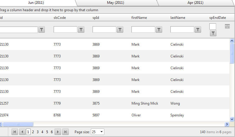 <telerik:RadGrid ID="RadGridData" runat="server" AllowFilteringByColumn="True" AllowSorting="True" GridLines="None" ShowGroupPanel="True" AllowPaging="True" onneeddatasource="RadGridData_NeedDataSource" PageSize="25" ShowStatusBar="True" ViewStateMode="Enabled"> <MasterTableView Width="100%" Height="100%"> </MasterTableView> <ClientSettings AllowDragToGroup="True" AllowAutoScrollOnDragDrop="False"> <Scrolling AllowScroll="True" UseStaticHeaders="True" SaveScrollPosition="true" /> </ClientSettings> <MasterTableView> <RowIndicatorColumn> <HeaderStyle Width="20px"></HeaderStyle> </RowIndicatorColumn> <ExpandCollapseColumn> <HeaderStyle Width="20px"></HeaderStyle> </ExpandCollapseColumn> </MasterTableView> <HeaderContextMenu EnableAutoScroll="True"></HeaderContextMenu> </telerik:RadGrid>