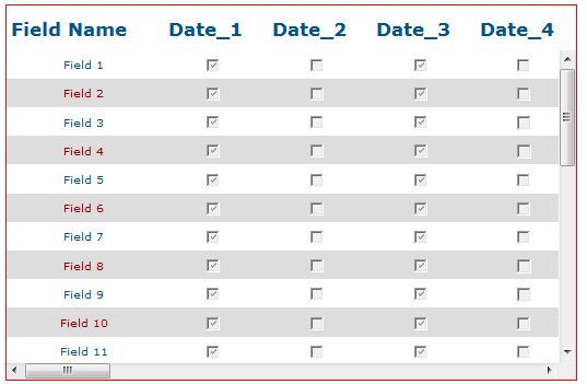 My Application requires a grid of checkboxes that scrolls both vertically and horizontally. This works fine in IE, but in FIrefox, the horizontal is missing. Here are the setting I'm using: