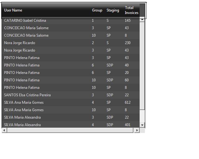 <asp:Content ID="content" ContentPlaceHolderID="DefaultContent" runat="Server"> <h1 style="text-align: center;"> Assign Invoices</h1> <br /> <asp:Panel runat="server" ID="ViewChooserWrapper"> <telerik:RadTabStrip runat="server" ID="ViewChooser" AutoPostBack="True" SelectedIndex="0" MultiPageID="RadMultiPage1" Skin="Black"> <Tabs> <telerik:RadTab Text="Daily Resume" Selected="True" /> <telerik:RadTab Text="Assign Invoices" /> </Tabs> </telerik:RadTabStrip> <div class="content"> <asp:Panel runat="server" ID="Panel1"> </asp:Panel> </div> <telerik:RadMultiPage ID="RadMultiPage1" runat="server" BorderColor="Black" BorderStyle="Solid" BorderWidth="1px" SelectedIndex="0" ClientIDMode="Static" RenderSelectedPageOnly="True"> <telerik:RadPageView ID="pvDailyResume" runat="server"> <telerik:RadGrid ID="RadGrid1" runat="server" Skin="Black" CellSpacing="0" GridLines="None" AllowMultiRowSelection="True"> <ClientSettings> <Selecting AllowRowSelect="True" /> <Scrolling AllowScroll="True" ScrollHeight="400px" UseStaticHeaders="True" /> </ClientSettings> <MasterTableView> <CommandItemSettings ExportToPdfText="Export to PDF"></CommandItemSettings> <RowIndicatorColumn FilterControlAltText="Filter RowIndicator column"> <HeaderStyle Width="20px"></HeaderStyle> </RowIndicatorColumn> <ExpandCollapseColumn FilterControlAltText="Filter ExpandColumn column"> <HeaderStyle Width="20px"></HeaderStyle> </ExpandCollapseColumn> <EditFormSettings> <EditColumn FilterControlAltText="Filter EditCommandColumn column"> </EditColumn> </EditFormSettings> </MasterTableView> <FilterMenu EnableImageSprites="False"> </FilterMenu> <HeaderContextMenu CssClass="GridContextMenu GridContextMenu_Windows7"> </HeaderContextMenu> </telerik:RadGrid> </telerik:RadPageView> <telerik:RadPageView ID="pvAssignInvoices" runat="server"> <table> <tr> <td> <telerik:RadListBox ID="RadListBox1" runat="server" AllowReorder="True" Skin="Black" Sort="Ascending" Height="400px" Width="220px" EnableDragAndDrop="True"> <ButtonSettings TransferButtons="All"></ButtonSettings> <HeaderTemplate> <h5 style="color: White; text-align: center"> USERS</h5> </HeaderTemplate> </telerik:RadListBox> </td> <td> <telerik:RadListBox ID="RadListBox2" runat="server" EnableDragAndDrop="True" Height="400px" AllowReorder="True" Width="140px" Skin="Black"> <ButtonSettings TransferButtons="All"></ButtonSettings> <HeaderTemplate> <h5 style="color: White; text-align: center"> STAGING</h5> </HeaderTemplate> </telerik:RadListBox> </td> <td> <telerik:RadListBox ID="RadListBox3" runat="server" SelectionMode="Multiple" EnableDragAndDrop="True" Height="400px" Width="140px" AllowReorder="True" Skin="Black"> <ButtonSettings TransferButtons="All"></ButtonSettings> <HeaderTemplate> <h5 style="color: White; text-align: center"> GROUP</h5> </HeaderTemplate> </telerik:RadListBox> </td> <td> <telerik:RadButton ID="RadButton1" runat="server" Text="Assign" Skin="Black" Width="100px" Height="40px" OnClick="RadButton1_Click"> </telerik:RadButton> <br /> <br /> <telerik:RadButton ID="RadButton2" runat="server" Text="Unassign" Skin="Black" Width="100px" Height="40px" OnClick="RadButton4_Click"> </telerik:RadButton> <br /> <br /> <telerik:RadButton ID="RadButton3" runat="server" Text="Unassign All" Skin="Black" Width="100px" Height="40px" OnClick="RadButton3_Click"> </telerik:RadButton> </td> <td style="width: 10px"> </td> <td> <telerik:RadGrid ID="RadGrid2" runat="server" Skin="Black" CellSpacing="0" GridLines="None" Width="460px" Height="400px" AllowSorting="True" AllowMultiRowSelection="true" OnNeedDataSource="RadGrid2_NeedDataSource"> <ClientSettings> <Selecting AllowRowSelect="True" /> <Scrolling AllowScroll="True" UseStaticHeaders="True" /> </ClientSettings> <MasterTableView DataKeyNames="UserName,Group,Staging"> <CommandItemSettings ExportToPdfText="Export to PDF"></CommandItemSettings> <RowIndicatorColumn FilterControlAltText="Filter RowIndicator column"> <HeaderStyle Width="20px"></HeaderStyle> </RowIndicatorColumn> <ExpandCollapseColumn FilterControlAltText="Filter ExpandColumn column"> <HeaderStyle Width="20px"></HeaderStyle> </ExpandCollapseColumn> <EditFormSettings> <EditColumn FilterControlAltText="Filter EditCommandColumn column"> </EditColumn> </EditFormSettings> </MasterTableView> <FilterMenu EnableImageSprites="False"> </FilterMenu> <HeaderContextMenu CssClass="GridContextMenu GridContextMenu_Windows7"> </HeaderContextMenu> </telerik:RadGrid> </td> </tr> </table>