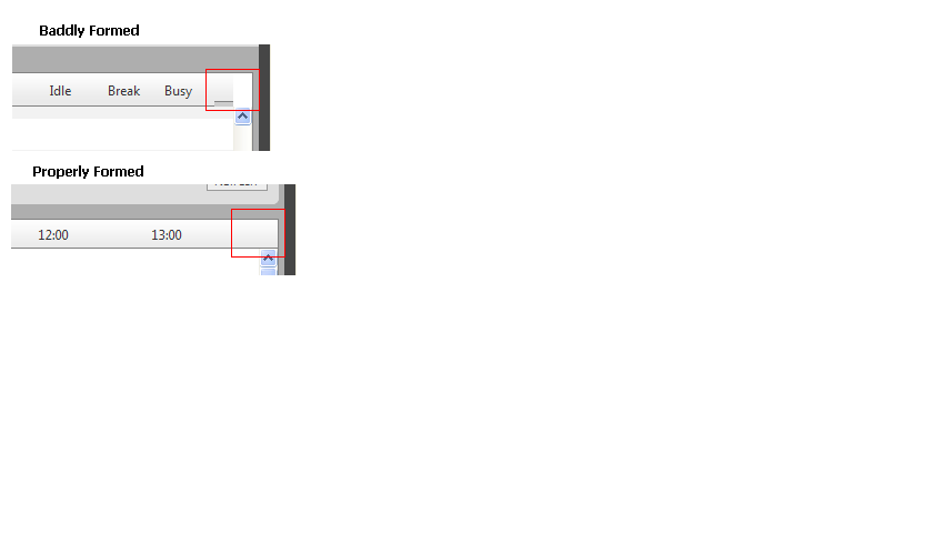 I have a RadGrid that is not displaying the header row correctly. The right column of the RadGrid has got some odd formatting. I have attached a document (.png) that illustrates the issue.