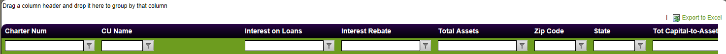 <telerik:RadGrid ID="_SearchResults" runat="server" AllowPaging="True" CellSpacing="0" GridLines="None" ShowGroupPanel="True" AllowSorting="True" PageSize="25" Width="100%" Height="100%" AllowFilteringByColumn="True" EnableLinqExpressions="true" HeaderStyle-Font-Bold="true" EnableEmbeddedSkins="False" CssClass="RadGrid_ASI" FilterItemStyle-BackColor="#6d9c1f" FilterMenu-BackColor="#CCCCCC" > <HeaderStyle CssClass="RadHeaderStyle" ForeColor="#ffffff" /> <GroupingSettings CaseSensitive="False" /> <ExportSettings IgnorePaging="True" OpenInNewWindow="True" ExportOnlyData="True" FileName="CUCustomSearch" > <Excel AutoFitImages="True" Format="ExcelML" /> <Pdf PageHeight="210mm" PageWidth="297mm" DefaultFontFamily="Arial Unicode MS" PageTopMargin="45mm" BorderStyle="Medium" BorderColor="#666666"> </Pdf> </ExportSettings> <ClientSettings AllowDragToGroup="True" AllowColumnsReorder="True" ReorderColumnsOnClient="True"> <Scrolling AllowScroll="True" UseStaticHeaders="True" FrozenColumnsCount="2" /> <%--<Resizing AllowColumnResize="true" ResizeGridOnColumnResize="true" AllowResizeToFit="true" />--%> </ClientSettings> <MasterTableView CommandItemDisplay="Top" InsertItemDisplay="Bottom" ShowGroupFooter="false" TableLayout="Auto" Width="100%" PagerStyle-NextPageImageUrl="../images/Grid/PagingNext.gif" PagerStyle-LastPageImageUrl="../images/Grid/PagingLast.gif" PagerStyle-PrevPageImageUrl="../images/Grid/PagingPrev.gif" PagerStyle-FirstPageImageUrl="../images/Grid/PagingFirst.gif"> <CommandItemSettings ShowAddNewRecordButton="False" ShowExportToCsvButton="False" ShowExportToExcelButton="true" ShowRefreshButton="False" ShowExportToPdfButton="False" ExportToExcelImageUrl="../images/Grid/ExportToExcel.gif" ExportToPdfImageUrl="../images/Grid/ExportToPdf.gif" /> <RowIndicatorColumn FilterControlAltText="Filter RowIndicator column" Visible="True"> </RowIndicatorColumn> <ExpandCollapseColumn FilterControlAltText="Filter ExpandColumn column" Visible="True" CollapseImageUrl="../images/Grid/SingleMinus.gif" ExpandImageUrl="../images/Grid/SingleMinus.gif"> </ExpandCollapseColumn> <EditFormSettings> <EditColumn FilterControlAltText="Filter EditCommandColumn column"> </EditColumn> </EditFormSettings> </MasterTableView> <FilterMenu EnableImageSprites="False" CssClass="RadMenu_ASI"> </FilterMenu></telerik:RadGrid>