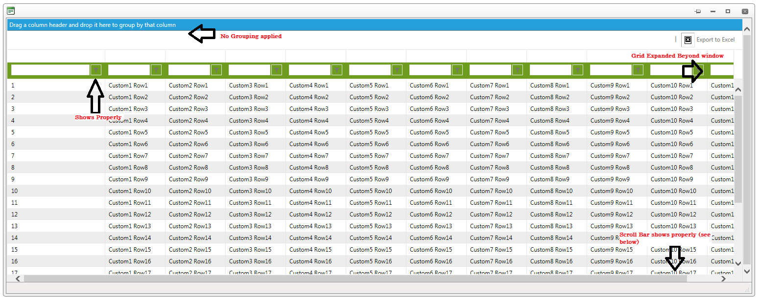 On initial load of the RadGrid the display is just fine and looks good. However if the user were to group something it will then resize the grid into something smaller. At times causing the Filters to no longer be visible. I have noticed others having the same sort of issue and the suggestions were cause each column to be a standard width or specify the size of the grid to be larger than the window. Also suggestions of setting the "autoscroll". Tried implementing those suggestions but results caused further problems. Maybe there is a solution that I haven't found.