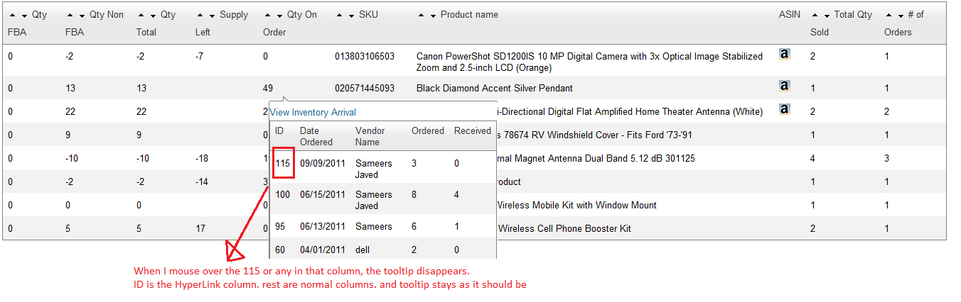 Now when we hover on the hyperlink column, it tries to display the tooltip (using Tooltip manager on the master page) and hence was causing the current tooltip to be closed.