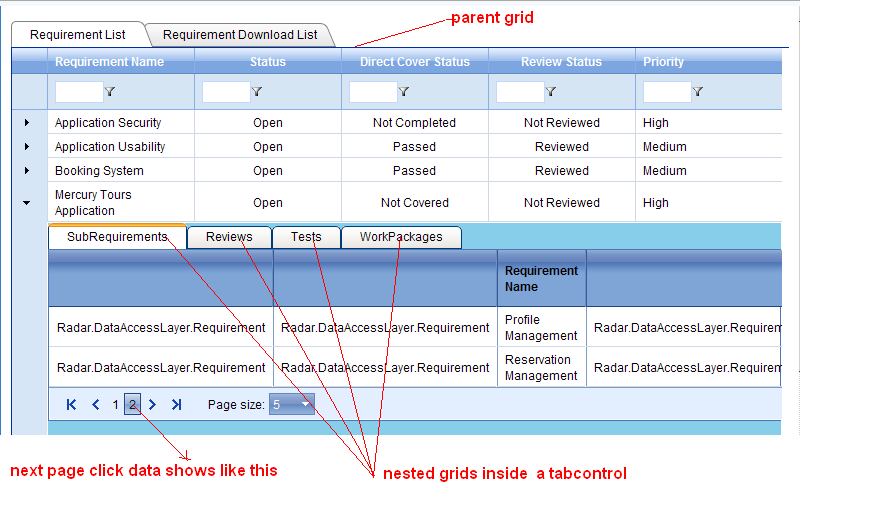 But the problem is when i click on the next page button of the ChildGrid...the data shows incorrectly with some binding texts..as attached in the image file below...i dont know why it is like that..