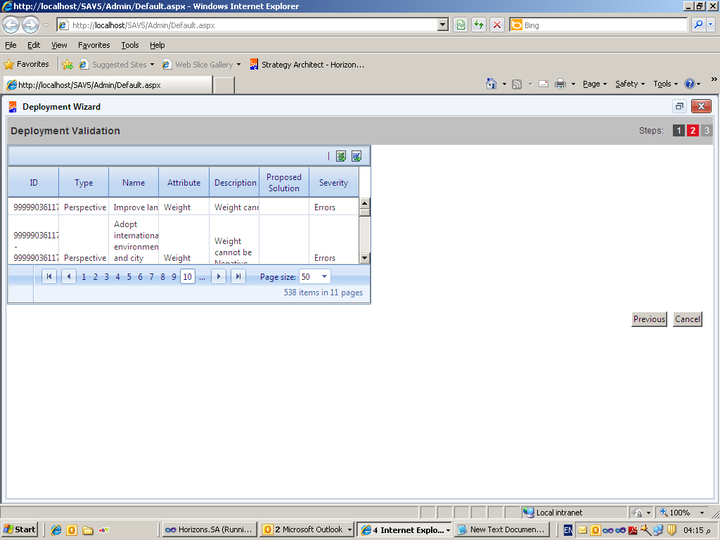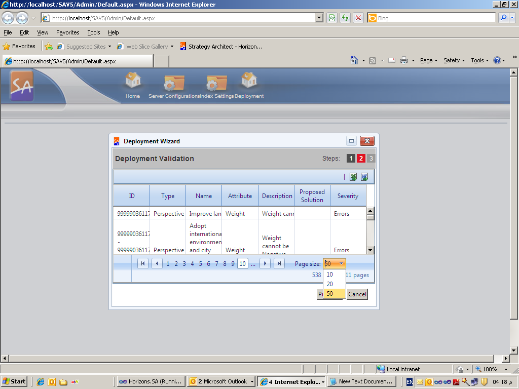 <telerik:RadWindow ID="RadDeploymentWindow" Title="<%$ Resources:Text, DeploymentWizard %>" runat="server" VisibleOnPageLoad="false" VisibleStatusbar="false" Width="535px" Modal="true" Height="350px" Behaviors="Close,Move,Maximize,Reload " Skin="Windows7" IconUrl="~/Images/icons/Enterprise.png"> <ContentTemplate><telerik:RadGrid ID="DeploymentGrid" Skin="Office2007" runat="server" AutoGenerateColumns="False" AllowSorting="True" PageSize="10" ShowStatusBar="True" CellSpacing="0" GridLines="Both" AllowPaging="True" OnNeedDataSource="RadGrid_NeedDataSource" Height="225px" Width="516px"> <ClientSettings> <Scrolling AllowScroll="true" UseStaticHeaders="true" /> </ClientSettings> <ExportSettings IgnorePaging="true" ExportOnlyData="true" OpenInNewWindow="true" HideStructureColumns="true" Excel-Format="Html" FileName="ErrorsAndWarnings"> </ExportSettings> <MasterTableView DataKeyNames="ObjectID" AutoGenerateColumns="false" CommandItemDisplay="Top" CommandItemSettings-ShowAddNewRecordButton="false" CommandItemSettings-ShowRefreshButton="false"> <CommandItemSettings ShowExportToWordButton="true" ShowExportToExcelButton="true" /> <ItemStyle Wrap="false" /> <Columns> <telerik:GridBoundColumn HeaderStyle-HorizontalAlign="Center" DataField="ObjectID" HeaderText="ID"> </telerik:GridBoundColumn> <telerik:GridBoundColumn HeaderStyle-HorizontalAlign="Center" DataField="ObjectType" HeaderText="Type"> </telerik:GridBoundColumn> <telerik:GridBoundColumn HeaderStyle-HorizontalAlign="Center" DataField="Name" HeaderText="Name"> </telerik:GridBoundColumn> <telerik:GridBoundColumn HeaderStyle-HorizontalAlign="Center" DataField="Attribute" HeaderText="Attribute"> </telerik:GridBoundColumn> <telerik:GridBoundColumn HeaderStyle-HorizontalAlign="Center" DataField="Error" HeaderText="Description"> </telerik:GridBoundColumn> <telerik:GridBoundColumn HeaderStyle-HorizontalAlign="Center" DataField="ProposedSoluation" HeaderText="Proposed Solution"> </telerik:GridBoundColumn> <telerik:GridBoundColumn HeaderStyle-HorizontalAlign="Center" DataField="Severity" HeaderText="Severity"> </telerik:GridBoundColumn> </Columns> </MasterTableView> <ClientSettings> <Resizing AllowColumnResize="True"></Resizing> </ClientSettings> </telerik:RadGrid>