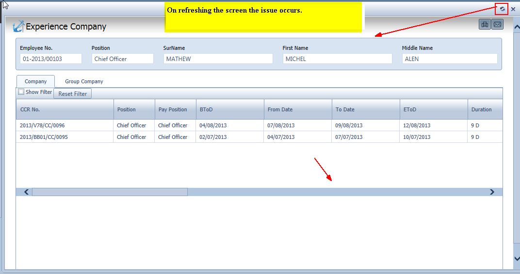 Actually this Grid is place inside a Tab. First time when page appears this height in % works perfect but after Window refresh it will lost its height and scroll detached from bottom. Sample attached. Issue is only in IE10.