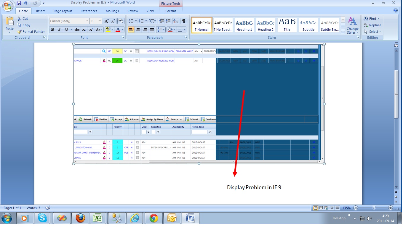 In my application i am using Radgrid with skin name Office2007(Width 100% for Main Grid and MatserTableView) .Its displaying properly in Google Chrome and Mozilla but not in IE9 .