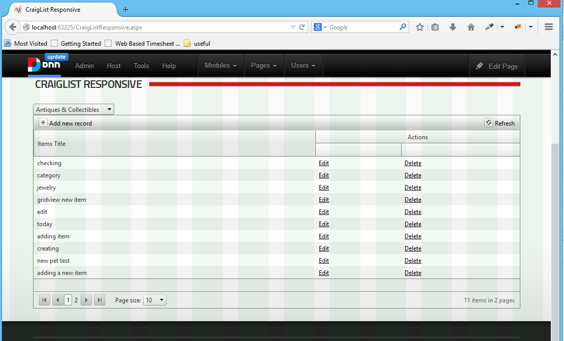<%@ Control Language="C#" AutoEventWireup="true" CodeBehind="CraigList.ascx.cs" Inherits="CraigListResponsive.CraigList" %><%@ Register Assembly="Telerik.Web.UI" Namespace="Telerik.Web.UI" TagPrefix="telerik" %><telerik:RadPageLayout runat="server" ID="layoutCraigList" ShowGrid="true" GridType="Fluid"> <Rows> <telerik:LayoutRow> <Content> <telerik:RadDropDownList runat="server" ID="craigListCategory" DataTextField="CategoryName" DataValueField="CategoryId" OnSelectedIndexChanged="CraigListCategorySelectedIndexChanged"> </telerik:RadDropDownList> </Content> </telerik:LayoutRow> <telerik:LayoutRow> <Content> <telerik:RadCodeBlock ID="RadCodeBlockPopWindow" runat="server"> <script type="text/javascript"> var popUp; function PopUpShowing(sender, eventArgs) { popUp = eventArgs.get_popUp(); var gridWidth = sender.get_element().offsetWidth; var gridHeight = sender.get_element().offsetHeight; var popUpWidth = popUp.style.width.substr(0, popUp.style.width.indexOf("px")); var popUpHeight = popUp.style.height.substr(0, popUp.style.height.indexOf("px")); popUp.style.left = ((gridWidth - popUpWidth) / 2 + sender.get_element().offsetLeft).toString() + "px"; popUp.style.top = ((gridHeight - popUpHeight) / 2 + sender.get_element().offsetTop).toString() + "px"; } </script> </telerik:RadCodeBlock> <telerik:RadAjaxManager runat="server" ID="listAjaxManager"> <AjaxSettings> <telerik:AjaxSetting AjaxControlID="craigListGrid"> </telerik:AjaxSetting> </AjaxSettings> </telerik:RadAjaxManager> <telerik:RadGrid runat="server" ID="craigListGrid" AllowPaging="true" ShowFooter="true" AutoGenerateColumns="false" OnPreRender="CraigListGridPreRender" OnNeedDataSource="CraigListGridNeedDataSource" OnUpdateCommand="CraigListGridSaveCommand" OnInsertCommand="CraigListGridSaveCommand" OnDeleteCommand="CraigListGridDeleteCommand" OnItemCommand="CraigListGridItemCommand"> <MasterTableView CommandItemDisplay="Top" DataKeyNames="ItemId" EditMode="PopUp"> <ColumnGroups> <telerik:GridColumnGroup Name="Actions" HeaderText="Actions" HeaderStyle-HorizontalAlign="Center"> </telerik:GridColumnGroup> </ColumnGroups> <Columns> <telerik:GridBoundColumn UniqueName="Title" DataField="Title" HeaderText="Items Title"> </telerik:GridBoundColumn> <telerik:GridEditCommandColumn UniqueName="EditCommandColumn" ColumnGroupName="Actions"> </telerik:GridEditCommandColumn> <telerik:GridButtonColumn UniqueName="DeleteColumn" Text="Delete" ColumnGroupName="Actions" CommandName="Delete"> </telerik:GridButtonColumn> </Columns> <EditFormSettings UserControlName="~/DesktopModules/CraigListResponsive/CraigListEdit.ascx" EditFormType="WebUserControl"> <PopUpSettings ScrollBars="Auto" Width="400" /> <EditColumn UniqueName="EditCommandColumn"></EditColumn> </EditFormSettings> </MasterTableView> <ClientSettings> <ClientEvents OnPopUpShowing="PopUpShowing" /> <Selecting AllowRowSelect="True"></Selecting> </ClientSettings> </telerik:RadGrid> </Content> </telerik:LayoutRow> </Rows></telerik:RadPageLayout>What i'm doing wrong?