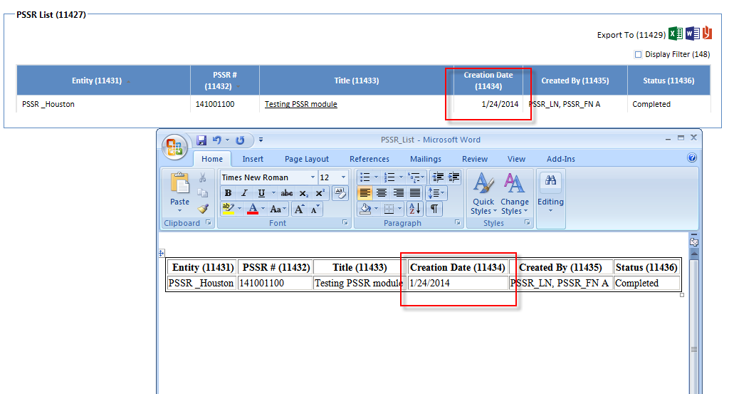 1. Word-All columns appear.jpg: It shows a sample document exported to "word" and all columns are visible and well formatted.