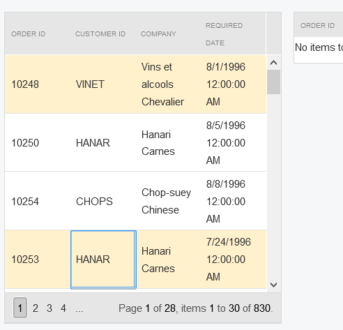 Attached files illustrate non working demo re-order: draggedrows.PNG shows 2 rows selected, dropped them between "HANAR" and "CHOPS"; draggedrowsdroppedbetweenhanarandchops.PNG shows result of operation, not expected result. Demo only checks for first dragged item...