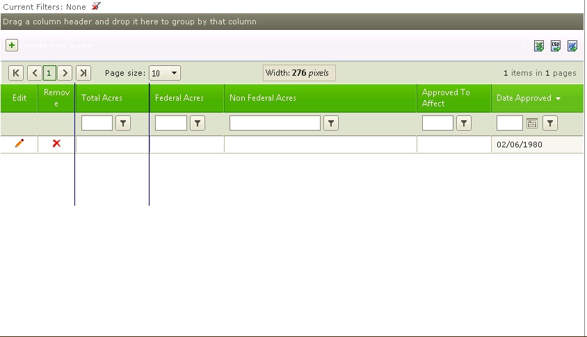 (in the screenshot I tried re-sizing "Total Acres" and instead it re-sized "Non Federal Acres" 2 columns over)