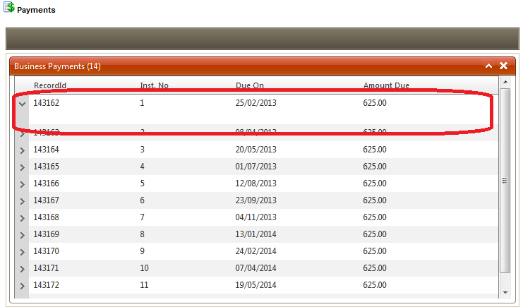 <telerik:RadGrid ID="radBusinessParentDetail" runat="server" AutoGenerateColumns="False" AllowSorting="True" AllowMultiRowSelection="False" DataSourceID="SqlDataSourcePaymentMaster" AllowPaging="false" EnableLinqExpressions="false" GridLines="None" ShowStatusBar="true"> <ClientSettings AllowExpandCollapse="True"></ClientSettings> <MasterTableView DataKeyNames="RecordId" AllowMultiColumnSorting="True" HierarchyLoadMode="Client" Width="100%"> <DetailTables> <telerik:GridTableView Name="PaymentDetail" AutoGenerateColumns="true" DataKeyNames="PaymentScheduleId" Width="100%" DataSourceID="SqlDataSourcePaymentDetail"> <ParentTableRelation> <telerik:GridRelationFields DetailKeyField="PaymentScheduleId" MasterKeyField="RecordId"> </telerik:GridRelationFields> </ParentTableRelation> <Columns> <telerik:GridBoundColumn DataField="PaidDate" HeaderText="Paid On" SortExpression="PaidDate" DataFormatString="{0:dd/MM/yyyy}"></telerik:GridBoundColumn> <telerik:GridBoundColumn Aggregate="Sum" DataField="AmountPaid" HeaderText="Amount Paid" SortExpression="AmountPaid"></telerik:GridBoundColumn> <telerik:GridBoundColumn Aggregate="Sum" DataField="Commission" HeaderText="Commission" SortExpression="Commission"></telerik:GridBoundColumn> <telerik:GridBoundColumn Aggregate="Sum" DataField="GST" HeaderText="GST" SortExpression="GST"></telerik:GridBoundColumn> <telerik:GridBoundColumn Aggregate="Sum" DataField="NetReceived" HeaderText="Net" SortExpression="NetReceived"></telerik:GridBoundColumn> <telerik:GridBoundColumn DataField="PaymentMethod" HeaderText="Payment Method" SortExpression="PaymentMethod"></telerik:GridBoundColumn> <telerik:GridBoundColumn DataField="Comment" HeaderText="Comment" SortExpression="Comment"></telerik:GridBoundColumn> <telerik:GridBoundColumn DataField="MiscField" HeaderText="Terminal ID" SortExpression="MiscField"></telerik:GridBoundColumn> <telerik:GridBoundColumn DataField="IsCommissionPaid" HeaderText="Commission Paid"></telerik:GridBoundColumn> </Columns> </telerik:GridTableView> </DetailTables> <Columns> <telerik:GridBoundColumn DataField="RecordId" HeaderText="RecordId" SortExpression="RecordId" UniqueName="RecordId"></telerik:GridBoundColumn> <telerik:GridBoundColumn Aggregate="Count" DataField="InstallmentNo" HeaderText="Inst. No"></telerik:GridBoundColumn> <telerik:GridBoundColumn DataField="DueDate" HeaderText="Due On" SortExpression="DueDate" DataFormatString="{0:dd/MM/yyyy}"></telerik:GridBoundColumn> <telerik:GridBoundColumn Aggregate="Sum" DataField="AmountDue" HeaderText="Amount Due" SortExpression="AmountDue"></telerik:GridBoundColumn> </Columns> </MasterTableView> </telerik:RadGrid><asp:SqlDataSource ID="SqlDataSourcePaymentMaster" ConnectionString="<%$ ConnectionStrings:COMS %>" ProviderName="System.Data.SqlClient" SelectCommand = "select RecordId, InstallmentNo, DueDate, AmountDue from paymentschedule where studentid='1302438' and isrefunded=0" runat="server"></asp:SqlDataSource><asp:SqlDataSource ID="SqlDataSourcePaymentDetail" ConnectionString="<%$ ConnectionStrings:COMS %>" ProviderName="System.Data.SqlClient" SelectCommand="select PaidDate, Commission, NetReceived, GST, PaymentMethod, Comment, MiscField from paymentscheduledetail where PaymentScheduleId=@RecordId" runat="server"> <SelectParameters> <asp:SessionParameter Name="RecordId" SessionField="RecordId" Type="Int32"> </asp:SessionParameter> </SelectParameters> </asp:SqlDataSource>