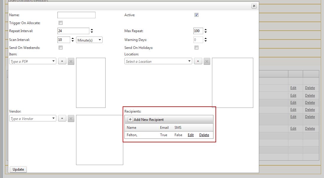 I have a RadGrid which when editing a record opens a Pop-Up edit window. Within the edit window is another RadGrid. What I would like to do is validate that any changes to that embedded grid have been saved prior to allowing the record to be updated. In my ItemCommand "Update" code I can tell if the embedded grid is still in edit mode or not, but I'm not sure how to prevent the Pop-Up edit window from closing. Attached is a picture of my scenario, perhaps that will be easier to understand.