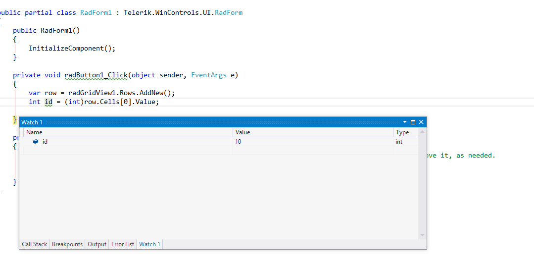 GridViewRowInfo rowinfo = radGridView1.Rows.AddNew();