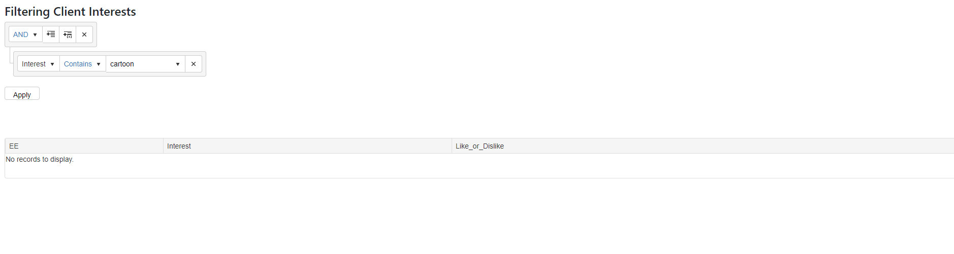 I am using RadFilter to filter results in a RadGrid. For whatever reason, it will not filter my results in the rad grid. If I used the asp Grid option though, it does work. Is there a setting I am missing? Pictures attatched show that I should be getting results when I filter for cartoon, using the RadGrid and RadFilter, but nothing comes up.