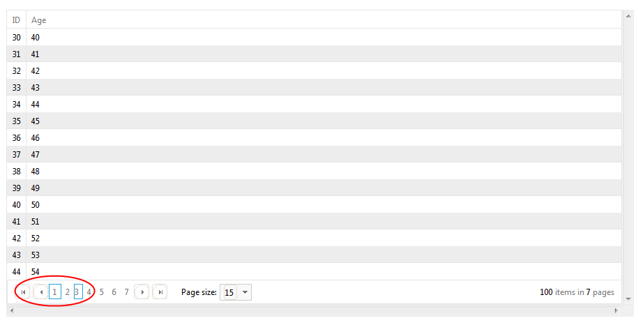 The grid now shows both pages as selected and is still showing the data of page 3.
