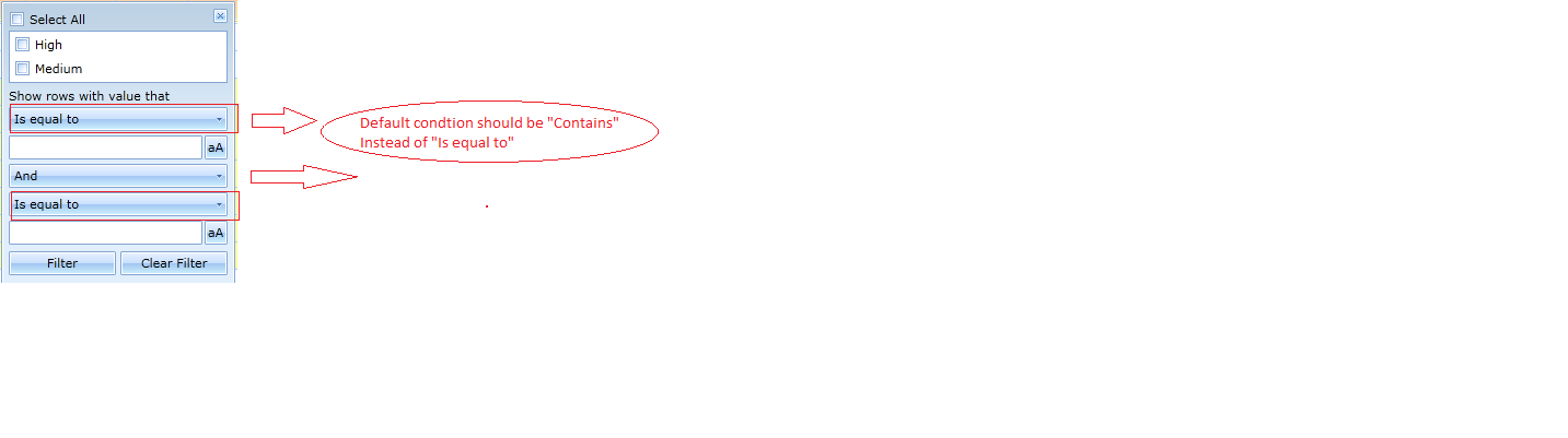 I am using RadGridView . when i open fileter option in Gridview it opens with Filter conditin as "Is equal to" . But i need to set default filter conditin as "Contains".