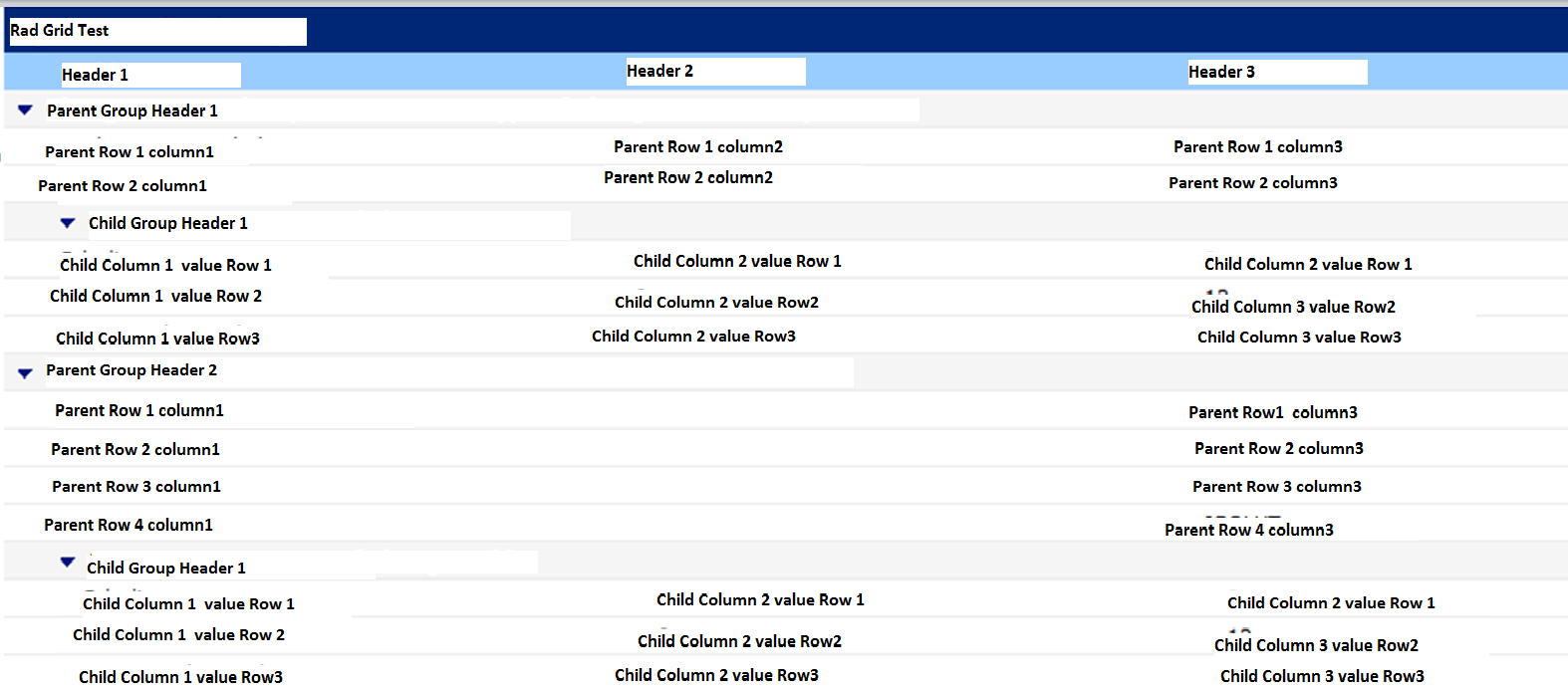 2. We also need paging based on the parent header group count. For example if total parent header count is 10 and each parent header has 2 child sub header and 20 rows and we set page size to 5 then only 2 pages should be formed. Ist page should display first 5 parent header and 2nd page should display next 5 parent header.