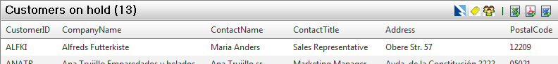 As you have twice referred to me the same article (Export from AJAX-enabled RadGrid) I want to underline what I am trying to do. Please look at the attached picture (similar to the one in my first post). I need grid with a toolbar (or closely associated to a grid) similar to Telerik's implementation of "commandbar" (CommandItemDisplay="top"). I need to add my own commands / shortcuts as normally on toolbars. And I would like to place the grid's title to the left on this toolbar.