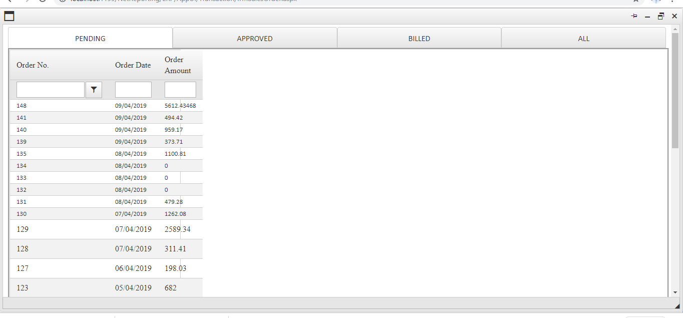 Whne i click the tab each grid loads but the grid border and column widths are not rendered properly.