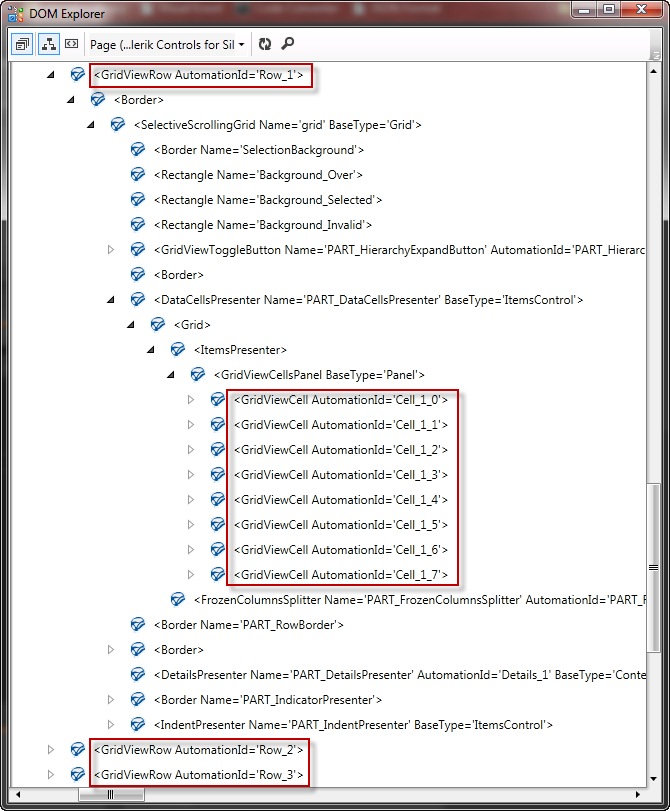 First, it is normal for the Silverlight RadGridView control to automatically add AutomationId's as demonstrated in the attached screen shots. Yes they are numbered based on the actual row number and X, Y value of each individual cell.