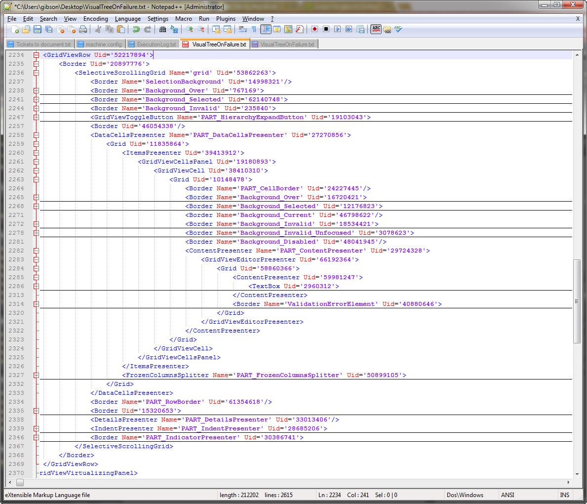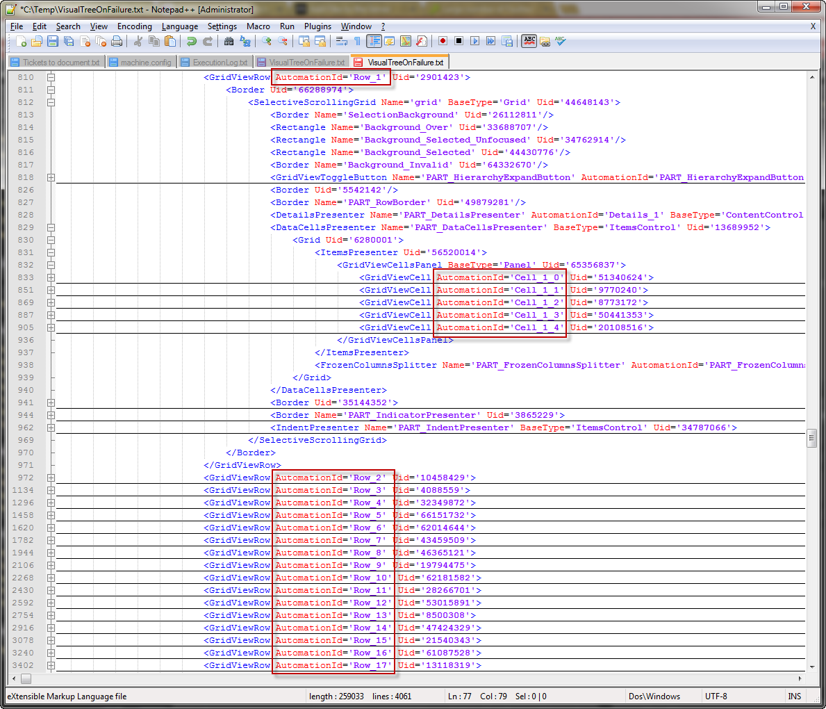 Looking through the captured Visual Tree, I see that all of the expected AutomationID's are missing! This I cannot explain. I have no idea why they're not there. Compare the two attached images. The second one is from a simple test I created against our public demo site and deliberately made fail.