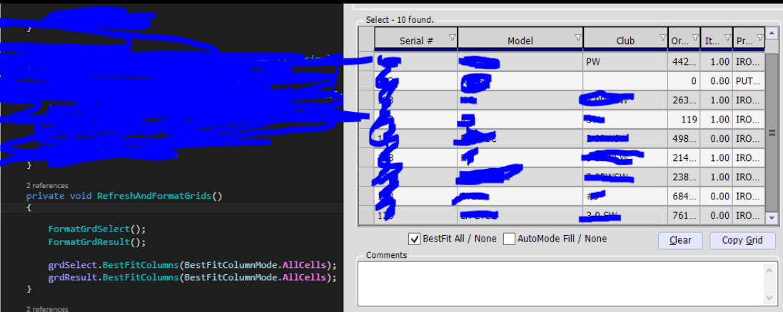 When we refresh the grid with a new databsource and reformat the grid, again the BetstFitColumns(BestFitColumnsMode.AllCells) is called.