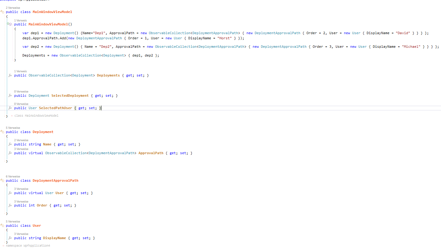 Items="{Binding AvailableUsers}" DisplayMemberPath="DisplayName" SelectedItem="{Binding SelectedPathUser.User, Mode=TwoWay, UpdateSourceTrigger=PropertyChanged}So the user can select the specific User from a list of available Users and it automatically set it to the SelectedDeployment.ApprovalPath.SelectedPathUser.User !