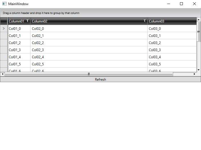 DummyData.Add(new DataViewModel() { Column01 = "Col01_" + i, Column02 = "Col02_" + i, Column03 = "Col03_" + i });