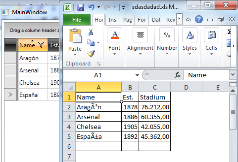 I am using telerik v 2.0.50727 for WPF (and i need to use this version, not any other one) and I got this "problem" when I try to export the items inside the RadGridView to Excel file: I need to export text which is in not US culture, with "á" and "ñ" for example. When I try to export it using the Export method from the RadGridView I get them changed.